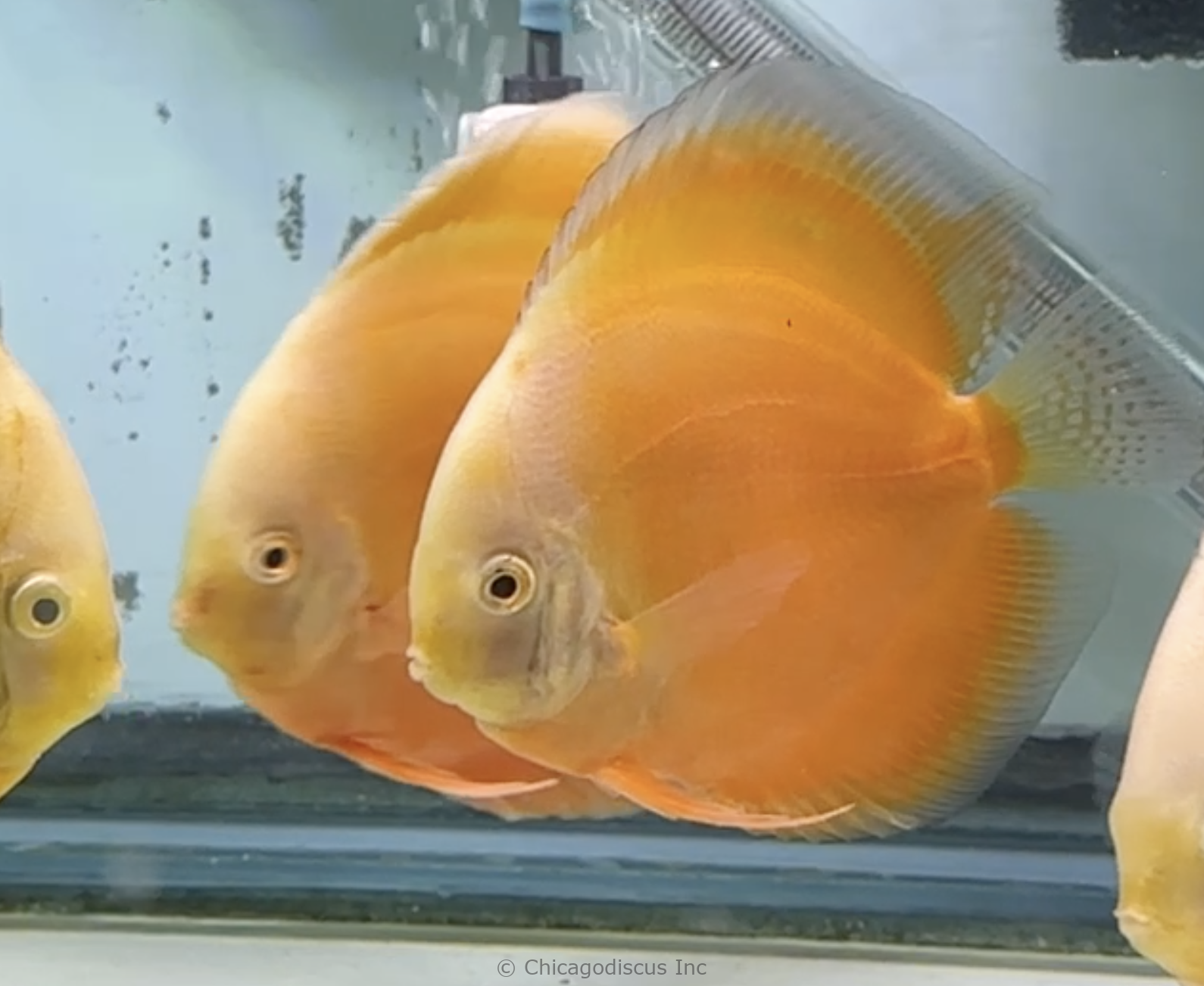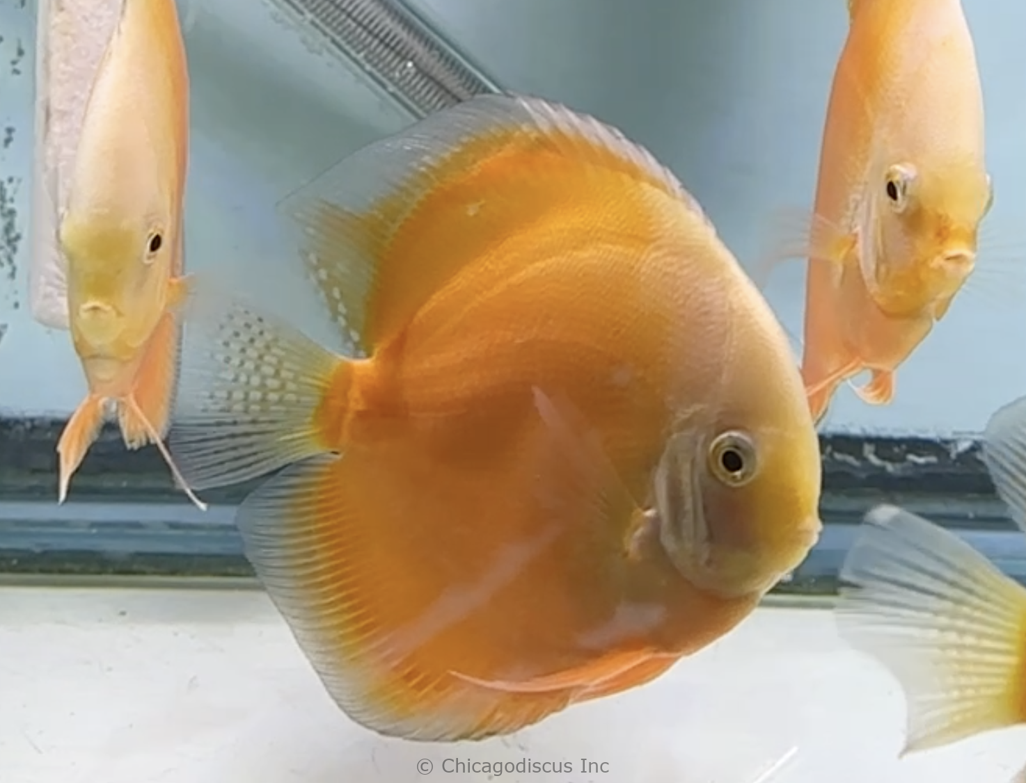 Yellow Valentines are a hybrid of Golden with Snow White. The result is a very pure yellow colored discus with hints of white. They are very bright and they will retain the pure solid colors throughout their life. These large size (5.0-5.5″) discus are excellent quality, and they should be fun to watch as they grow even larger and mature. Video and pictures are from the April 2026 stock.