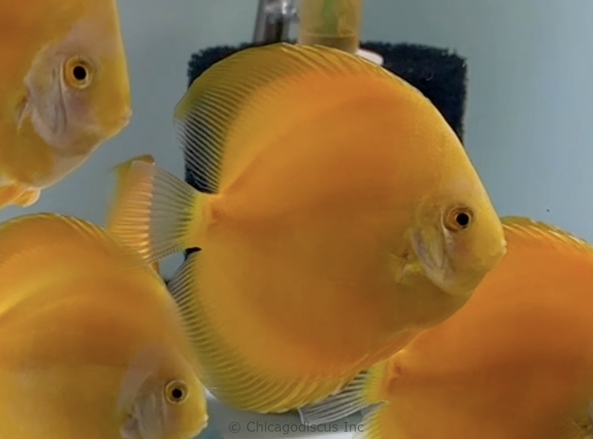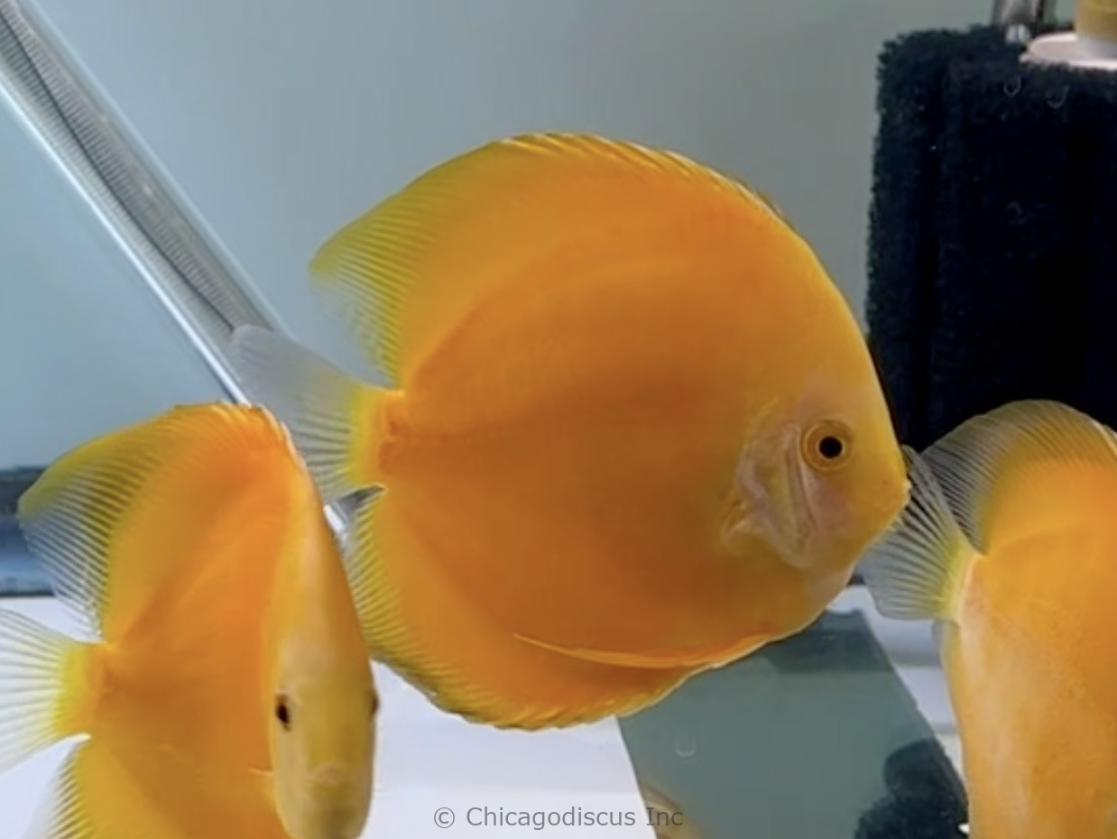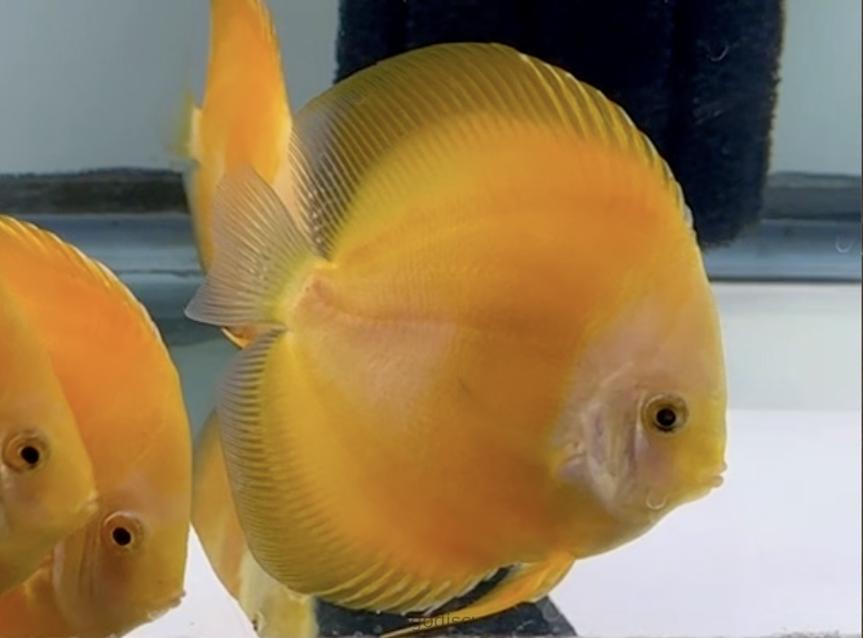These medium/large size 4.5-5.0″ Goldens are solid gold!  They are a deep rich shade of gold that goes all the way to their beautiful light golden face.  Many have solid deep golden body but some have lighter golden yellow tones on their body. These lovely Goldens will be a very nice splash of color to your discus tank.  Please look at the pictures and click on them for details.  Video and pictures are the April 2026 stock.