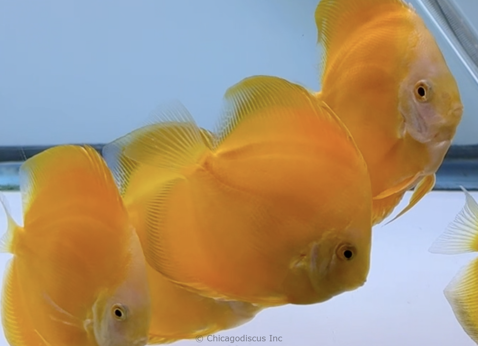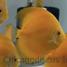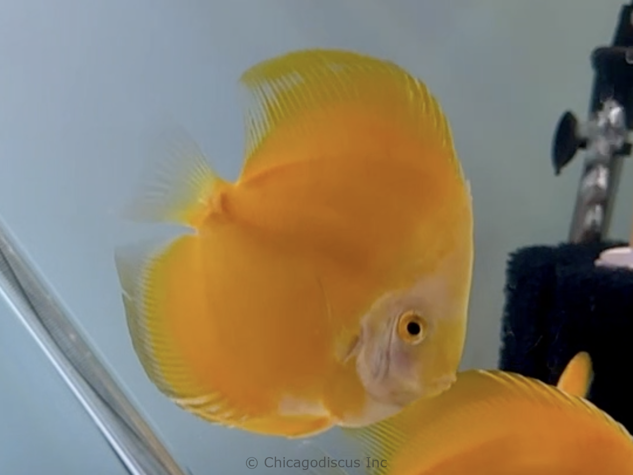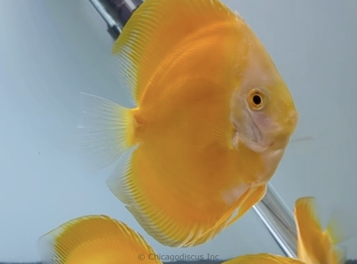 These medium/large size 4.5-5.0″ Goldens are solid gold!  They are a deep rich shade of gold that goes all the way to their beautiful light golden face.  Many have solid deep golden body but some have lighter golden yellow tones on their body. These lovely Goldens will be a very nice splash of color to your discus tank.  Please look at the pictures and click on them for details.  Video and pictures are the April 2026 stock.