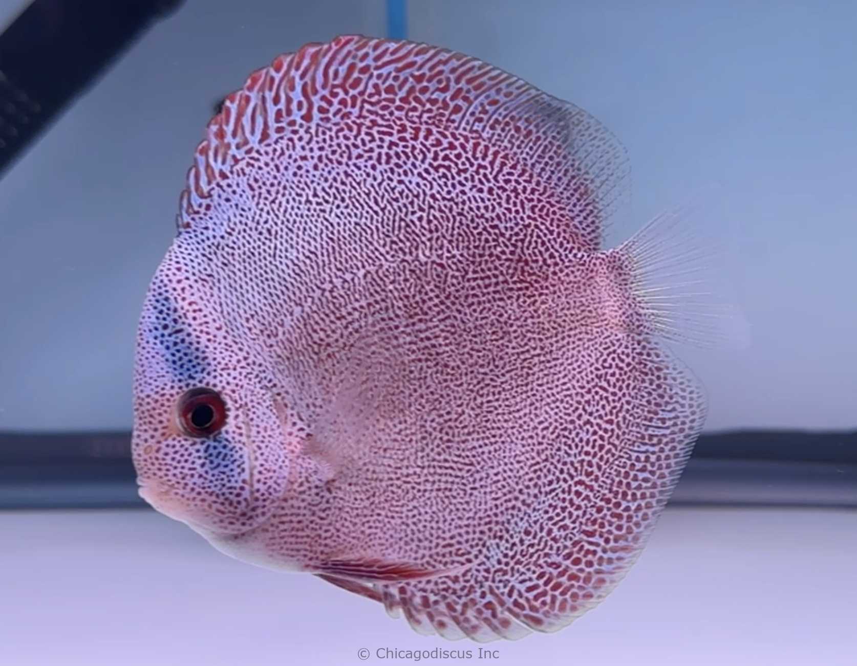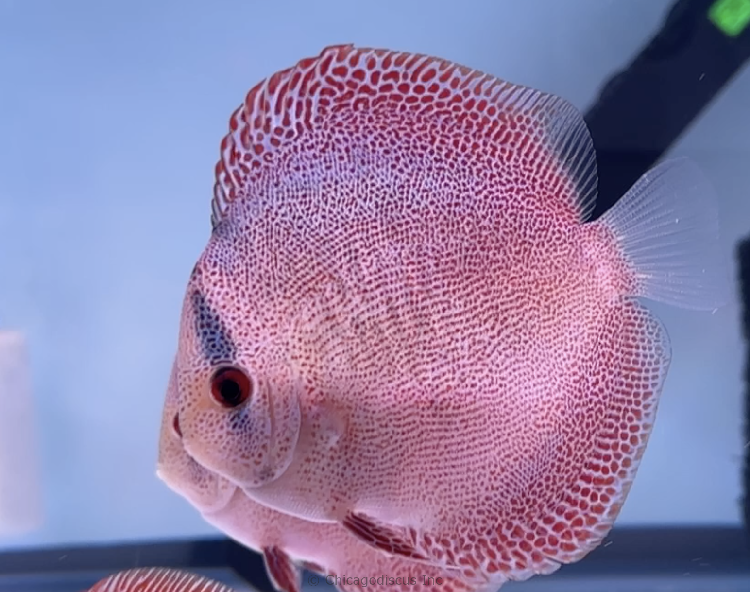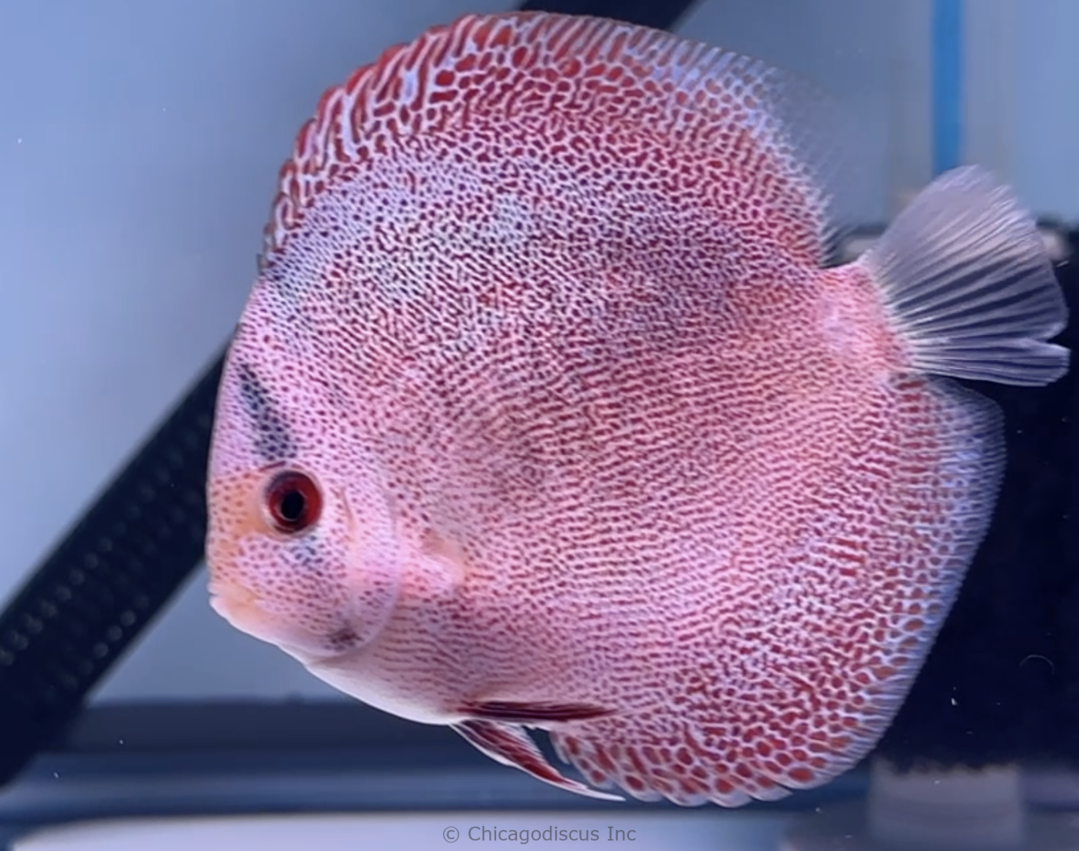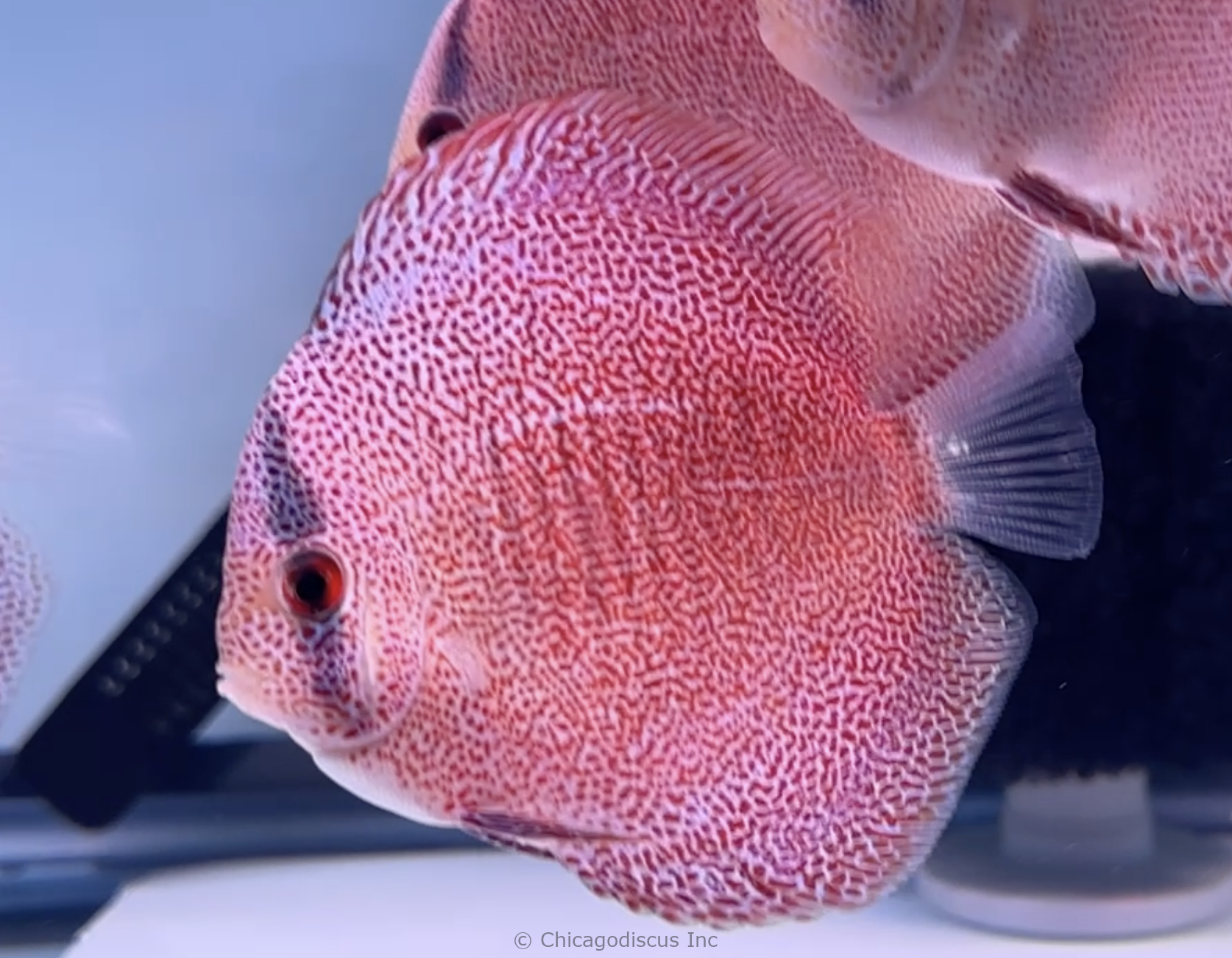 Super Pantheras are among the rarest and most beautiful eruption snakeskins in the world. We have had face-spotted eruptions in the past, but never have I seen quality like these. The spots are perfect, even size and distribution, and they go all the way to the very tip of their nose. The facial patterning is stunning. Someone once commented that it looks like each scale is individually hand painted. This is an amazing strain of discus! Please look at the pictures. Video is of the April 2026 stock. PLEASE NOTE: These amazing discus are selling out very quickly. There are only 2 left in stock. Act now to secure one of these for your discus aquarium.